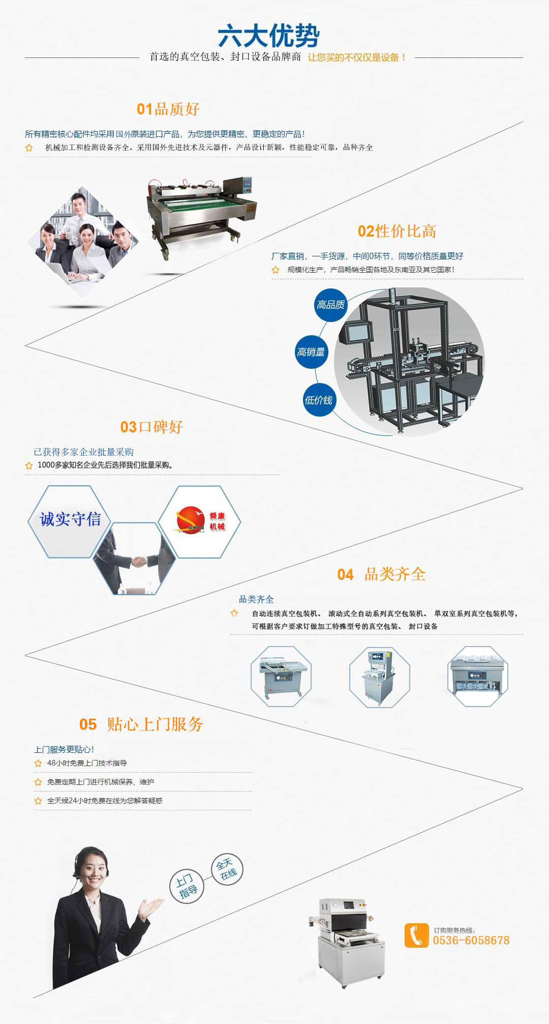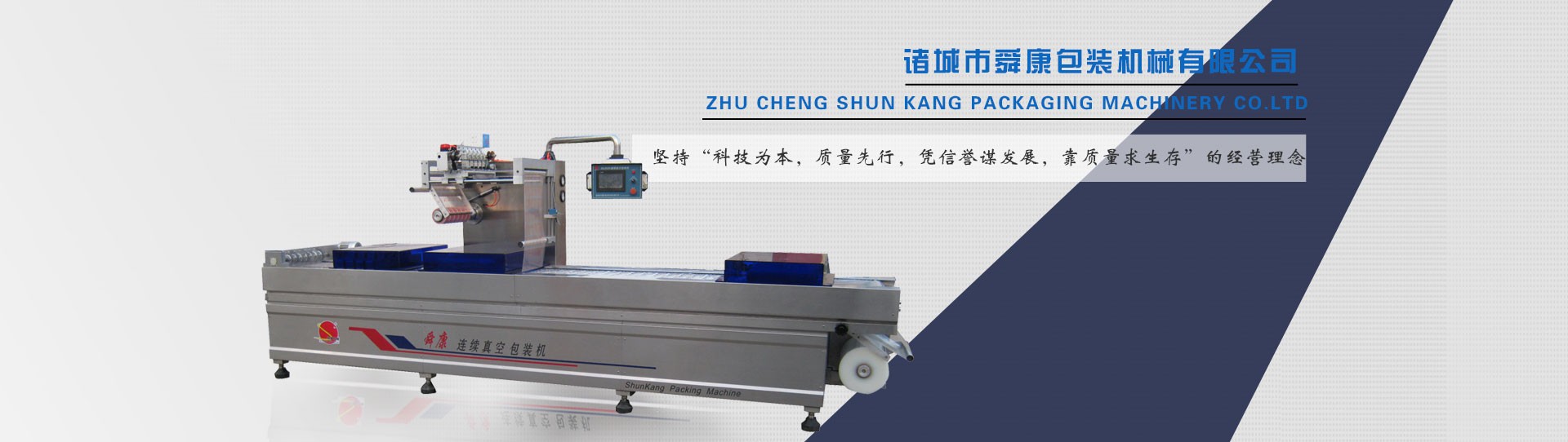 諸城市舜康包裝機械有限公司是一家集研發、制造、銷售、服務于一體的包裝機械生產企業。公司技術力量雄厚,機械加工和檢測設備齊全。采用國外先進技術及元器件,產品設計新穎,性能穩定可靠,品種齊全。 主要產品:自動連續真空包裝機、滾動式全自動系列真空包裝機、單雙室系列真空包裝機、系列封口機、盒裝食品真空(充氣)包裝機、連續盒式封口機、肉食加工設備等,可根據客戶要求訂做加工特殊型號的真空包裝、封口設備。 舜康公司堅持“科技為本,質量先行,憑信譽謀發展,靠質量求生存”的經營理念,為廣大客戶朋友提供優異的產品與服務。           舜康熱忱歡迎廣大國內外客戶朋友蒞臨參觀指導。...